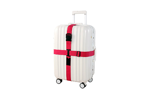 Durable quick-release buckle secures strap to bag. Fits a variety of luggage. 2″ x 75″ adjustable polyester webbing printed text.