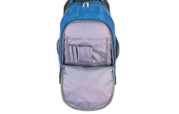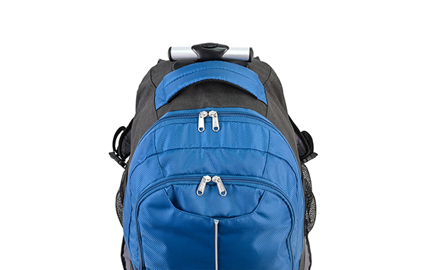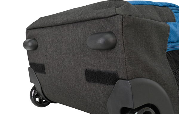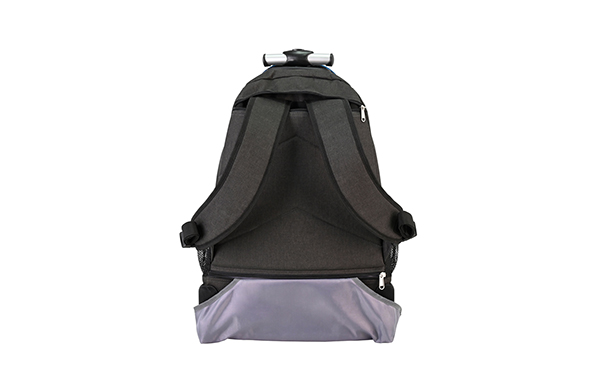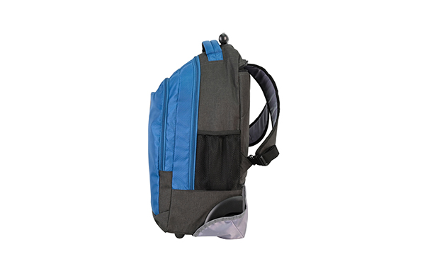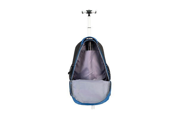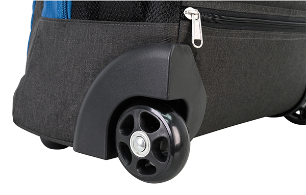 Our wheeled backpack makes traveling with a full load a breeze. Designed with two inline-style wheels and a telescoping handle, it allows you to cruise smoothly from place to place. The multi-compartment design keeps your items organized. Tuck-away backpack straps provide another useful mode of carry over rough or uneven terrain.